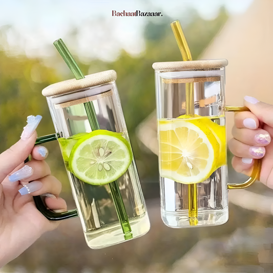 High Borosilicate Glass Straw Cup with Lid