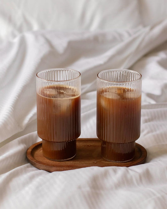 500ml Ribbed Glass cup with bamboo lid and Glass Straw