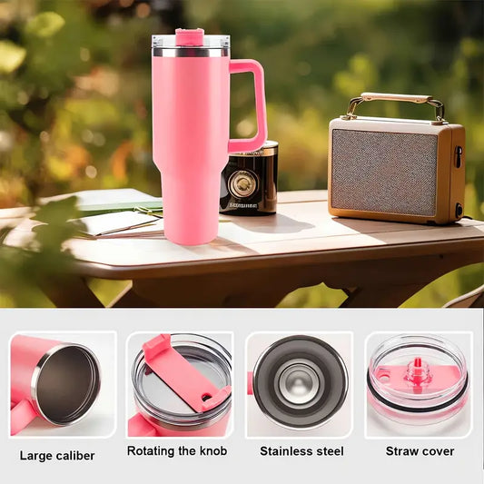40 Oz Tumbler With Handle, Straw and Transparent Lid