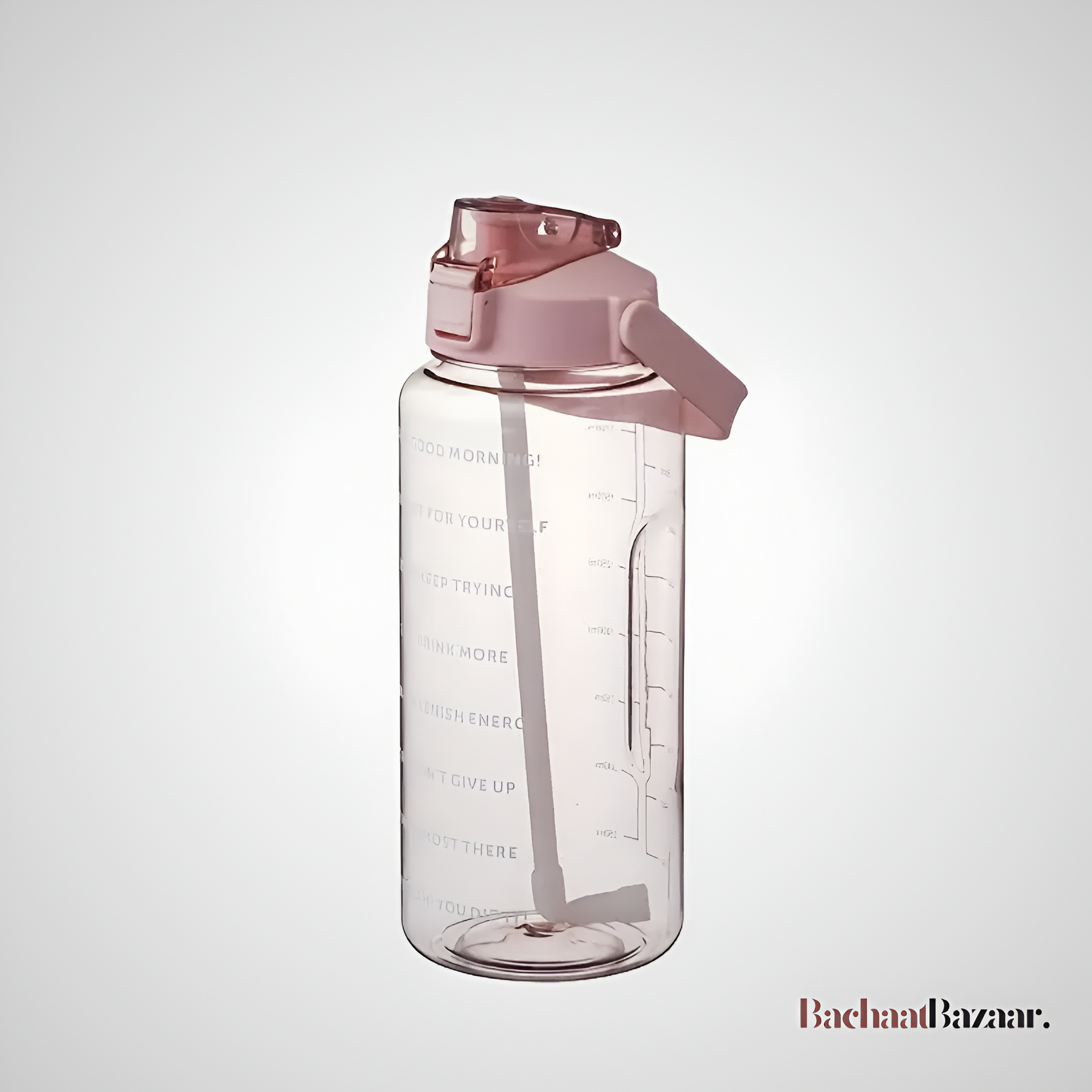 2L Large Capacity Sports Cup Water Bottle with Straw & Time Marker