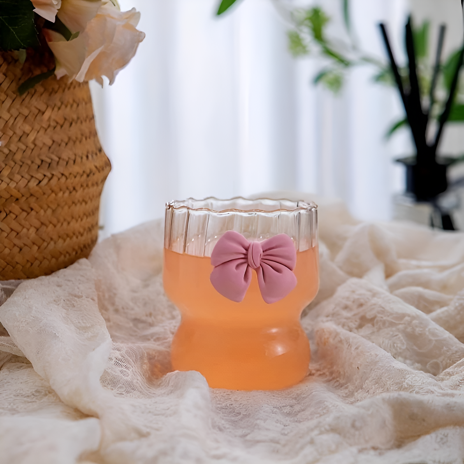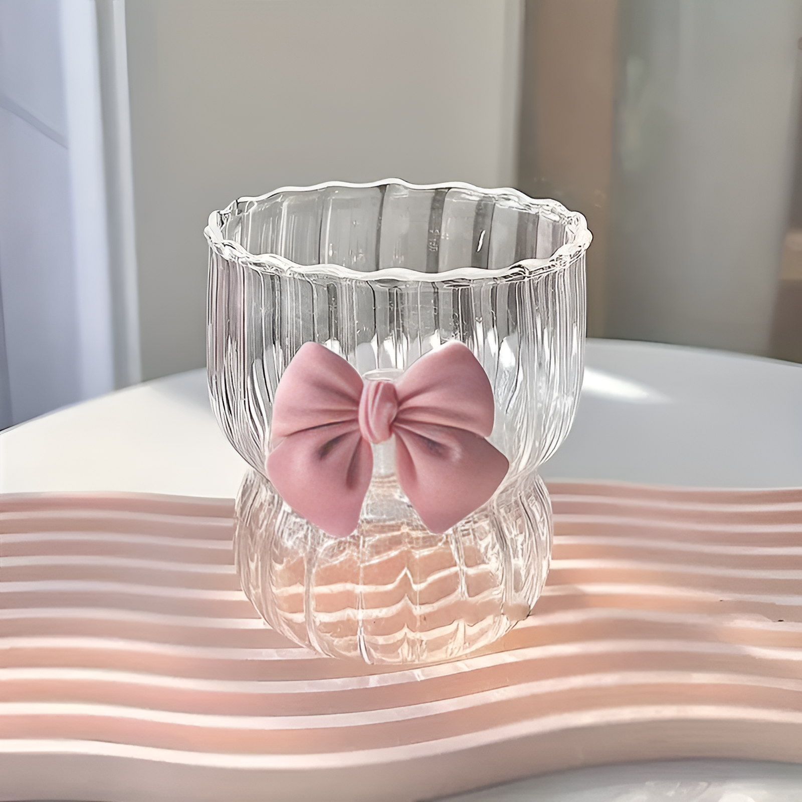 Elegant High-Quality Glass Coffee Cup with Pink Bow