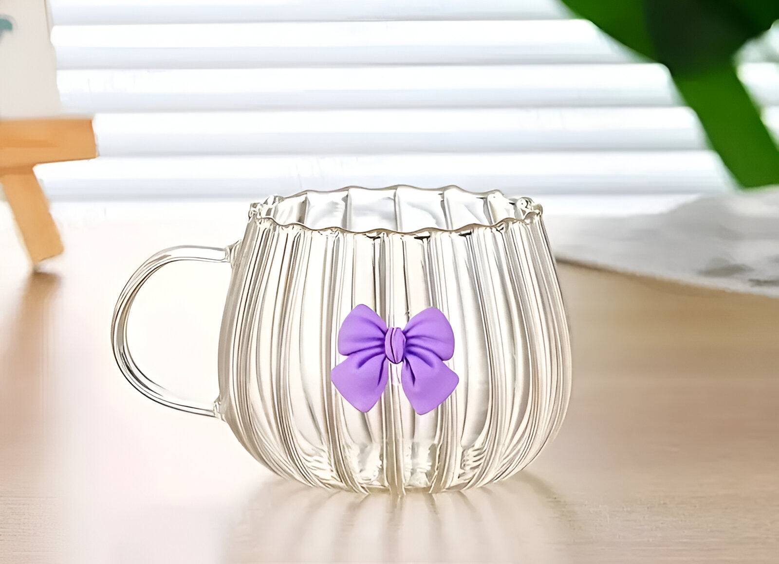 Bows Pumpkin Vertical Stripes Glass Cups with handle